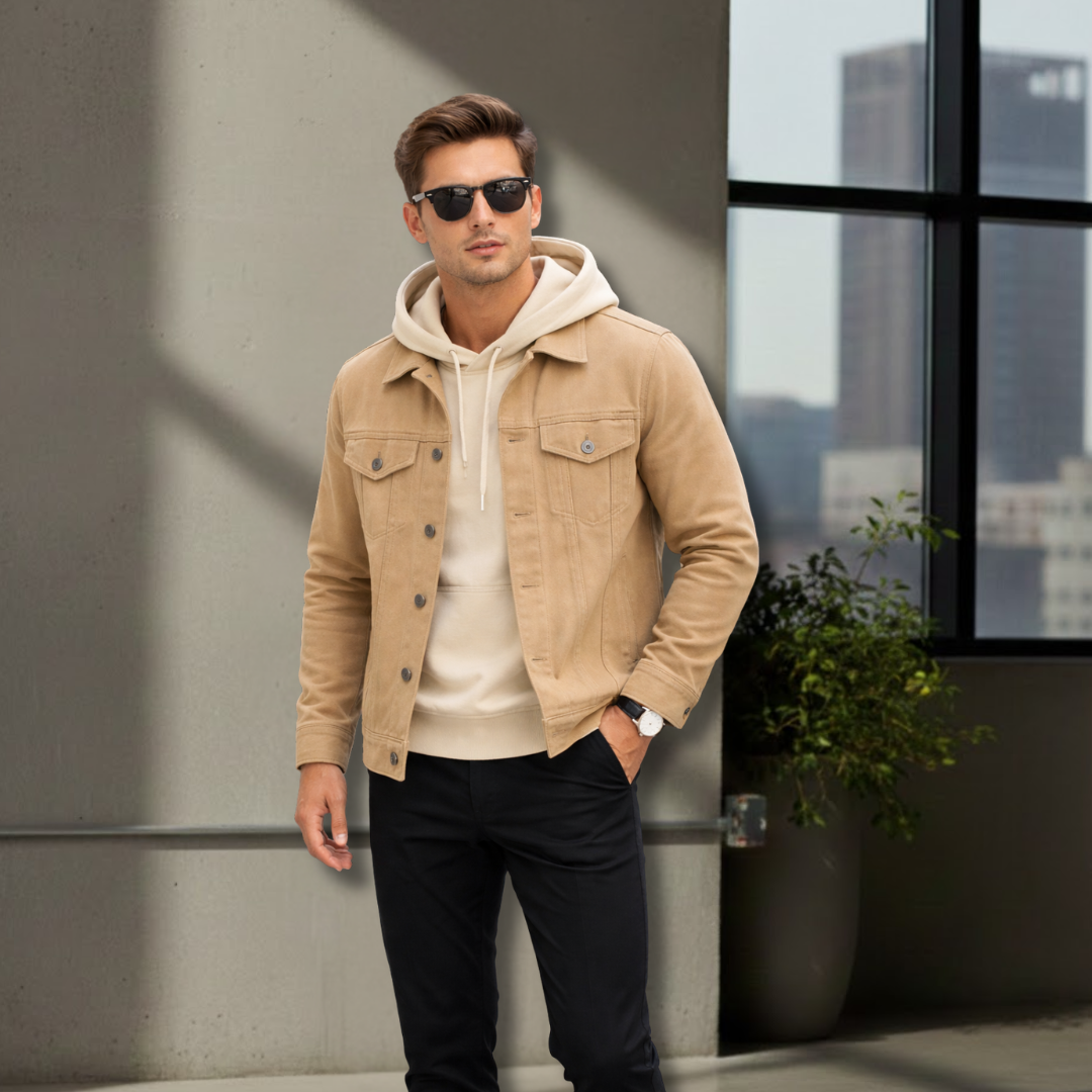 “Designed for the modern man, this outfit combines effortless style with everyday comfort. The lightweight tan jacket adds a refined touch, while the soft beige hoodie provides warmth and a relaxed feel. Paired with classic black pants, this look creates a balanced combination of casual and polished fashion, perfect for work, travel, or weekend outings.” ✨👔
